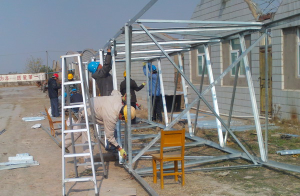徐圩供電所是第一次安裝35KV架空線路鐵塔。該所全體干群克服困難,加班加點(diǎn),對照圖紙,摸索著裝。組裝錯(cuò)再拆下重來,如此反復(fù),在同志們的共同努力下,第一個(gè)鐵塔終于成功組裝?,F(xiàn)已順利組裝4個(gè),并立成1個(gè)。(馬德松)