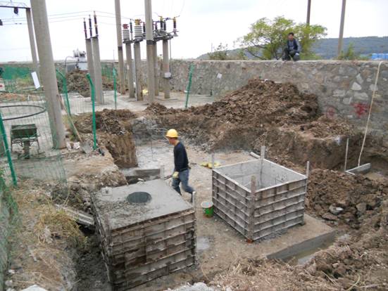圖為管港變電所內(nèi)設(shè)備基礎(chǔ)施工場(chǎng)景