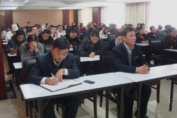 2月23日星期六,淮鹽大酒店組織全體員工,進行素質培訓。23日下午兩點,為提高酒店全體員工素質,給客人提供更加優(yōu)質的服務,樹立酒店良好的口碑,贏得更多的客戶,該酒店按照特別準備的詳細培訓計劃,對全體員工進行“酒店員工基本素質培訓”。酒店總經(jīng)理伏運余、總經(jīng)理助理徐園園和餐飲總監(jiān)陳明生與員工一起參加了培訓。(董淑娟)
