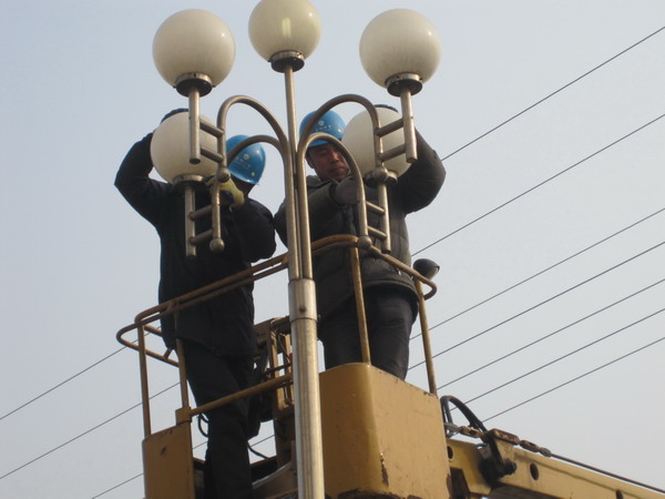 1月13日,青口供電所為了鹽場春節(jié)期間的美化、亮化,組織七名職工義務(wù)為鹽場搶修路燈。(宋中文)