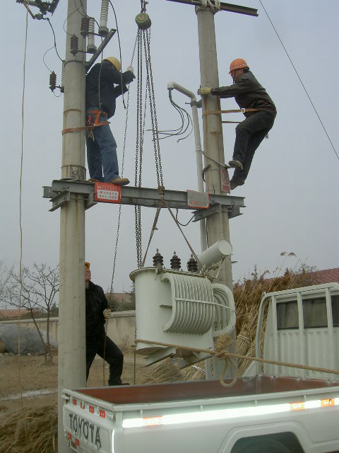 春節(jié)前夕,徐圩供電所加大電力設(shè)備和線路巡視維護力度,將預防大面積停電事故作為節(jié)前安全生產(chǎn)的首要任務。該所認真組織人員深入轄區(qū)查找線路和設(shè)備存在的安全隱患,提前作好安排和準備,2月5日發(fā)現(xiàn)辛高圩地區(qū)99#變壓器節(jié)日期間容量可能不夠,便及時調(diào)換了變壓器,確保用電安全。(圖為該所職工在調(diào)換變壓器)(馬德松)