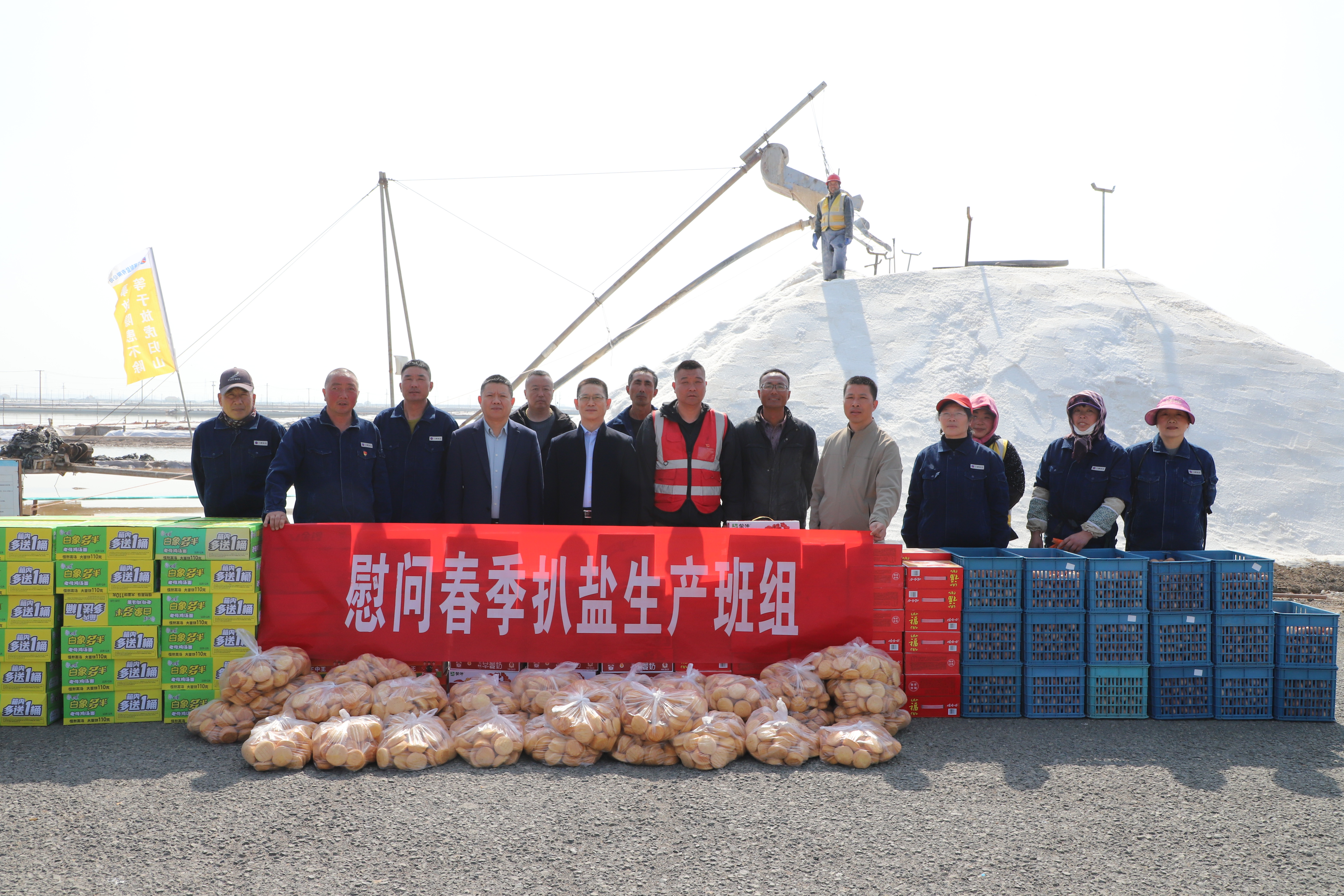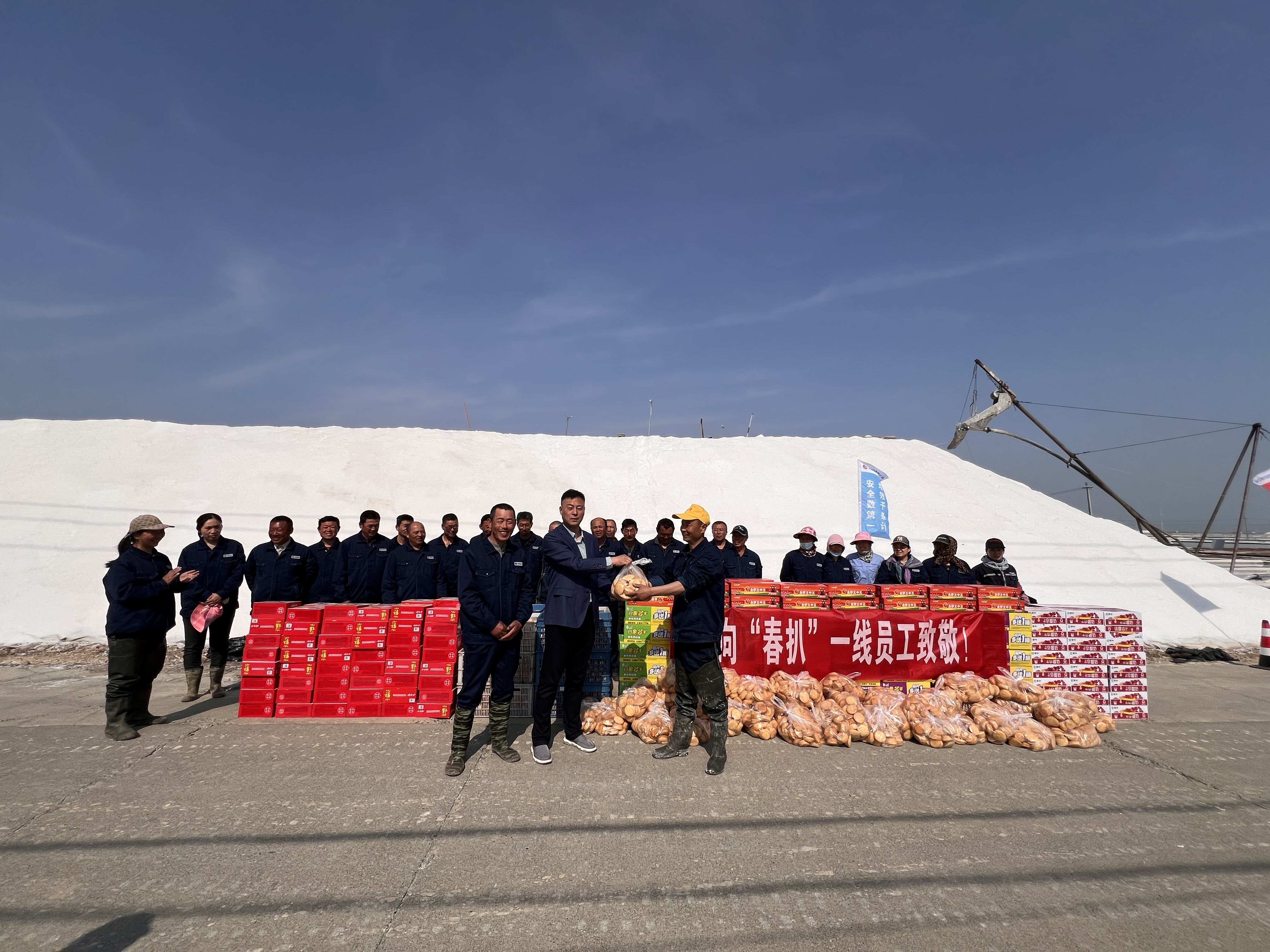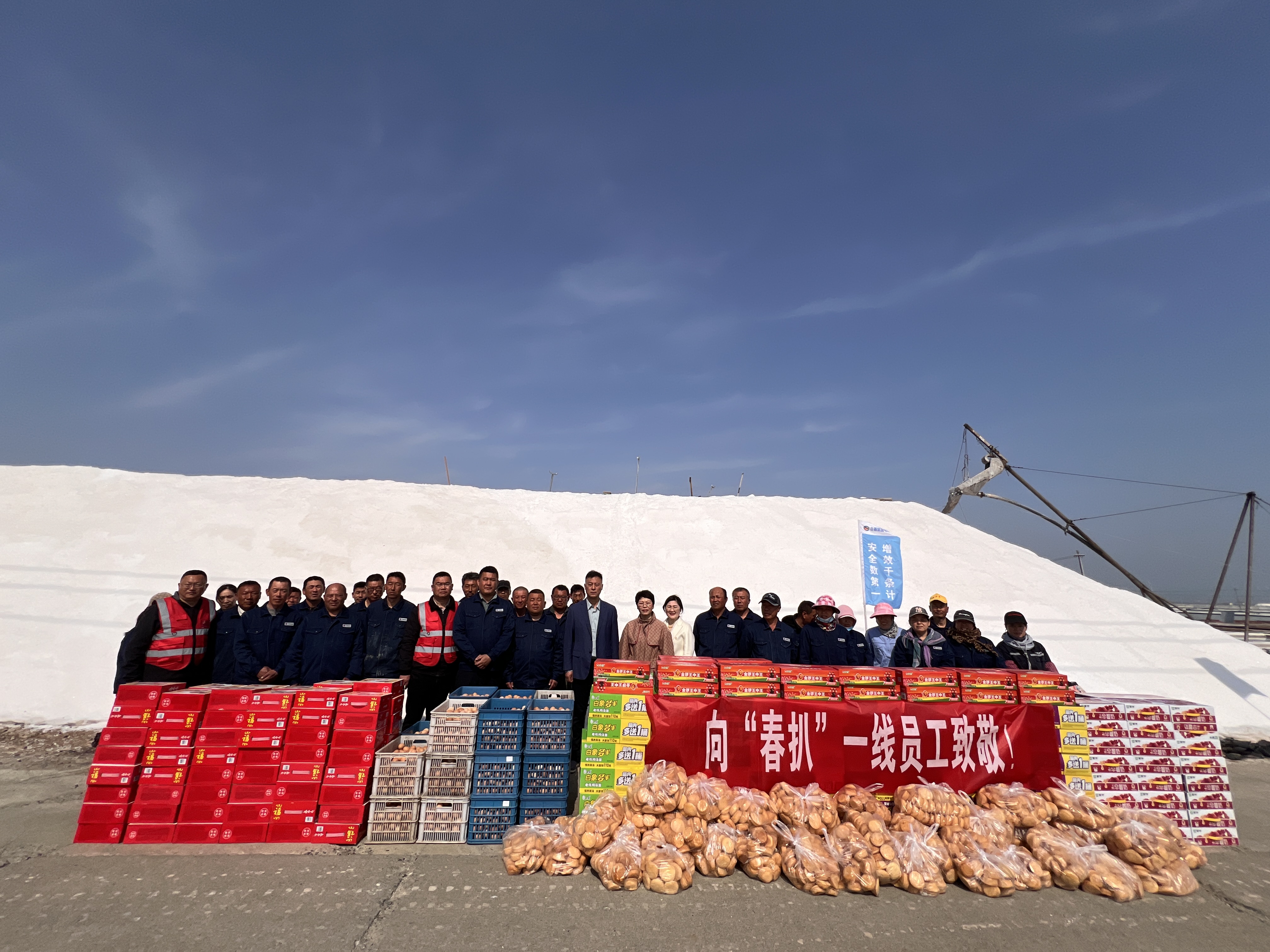 “你們辛苦了,我代表公司來看望大家。”在新河十班與埒南十一班,吳衛(wèi)平與扒鹽現(xiàn)場(chǎng)職工握手問好,感謝他們?cè)谶^去的一年為日曬制鹽公司的原鹽生產(chǎn)所付出的辛勤努力,叮囑他們一定要落實(shí)落細(xì)扒鹽生產(chǎn)措施,增強(qiáng)責(zé)任感和警覺性,嚴(yán)格執(zhí)行各項(xiàng)規(guī)章制度,切實(shí)保障扒鹽期間的安全生產(chǎn),并送上雞蛋、八寶粥、方便面、牛奶等物品。