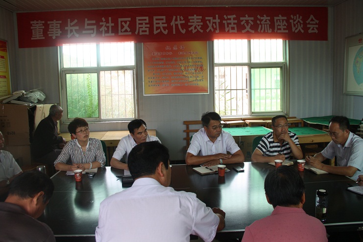 9月14日下午,投資公司在灌西社區(qū)召開了董事長(zhǎng)與社區(qū)居民對(duì)話交流座談會(huì)。公司黨委書記、董事長(zhǎng)王德志與來自灌西各個(gè)社區(qū)的十余名居民代表面對(duì)面進(jìn)行對(duì)話交流,就廣大居民關(guān)注的熱點(diǎn)、難點(diǎn)問題進(jìn)行現(xiàn)場(chǎng)溝通,釋疑解惑,聽取意見和建議。