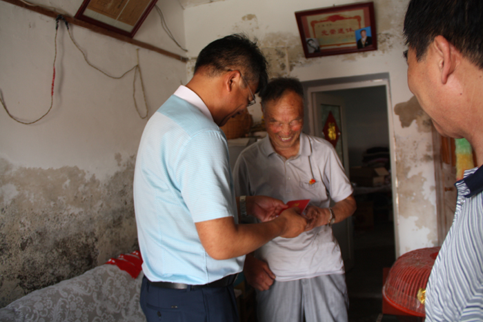 為紀念黨的生日,充分體現(xiàn)公司黨委對老黨員的關(guān)懷和愛護,6月30日,灌西投資公司黨委書記王德志、副書記王保平等一行走訪慰問老黨員和生活困難黨員。每到一處,王德志書記都親切地和老黨員拉家常,為老黨員佩戴黨徽,贈送黨章,詳細了解老人的身體狀況和生活情況并送上慰問金。