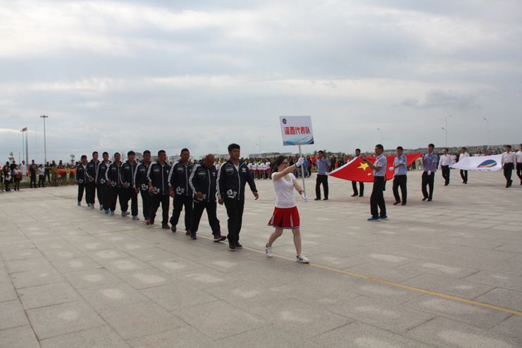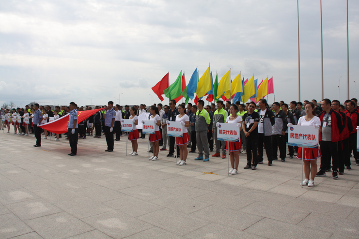 9點(diǎn)整開始舉行開幕式,在雄壯的《運(yùn)動(dòng)員進(jìn)行曲》中,8名司旗手分別手托國旗和集團(tuán)公司司旗,24名彩旗手高舉五彩旗首先入場(chǎng)。緊接著,灌西代表隊(duì)、臺(tái)北代表隊(duì)、供電代表隊(duì)、黃化制鈣代表隊(duì)、利海代表隊(duì)、氯堿代表隊(duì)、徐圩代表隊(duì)、機(jī)關(guān)代表隊(duì)、華茂代表隊(duì)、房地產(chǎn)代表隊(duì)、氨綸代表隊(duì)、新材料代表隊(duì)12支代表隊(duì)、130余名運(yùn)動(dòng)員以及裁判組成員依次入場(chǎng)。