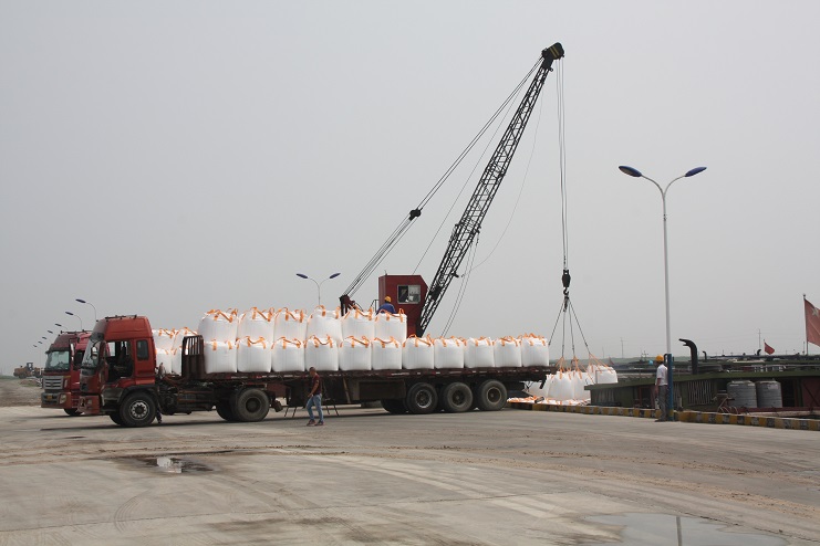 據(jù)了解,在國慶長假期間,該公司對各項工作做了充分的準(zhǔn)備,加強節(jié)日期間碼頭正常運營管理,對碼頭工人進行了排班,對吊裝設(shè)備、裝卸人員進行細致的安排部署,確保了國慶長假生產(chǎn)經(jīng)營不停息。雨日過后,從3日開始,五灌河碼頭就是一派車水馬龍景象,只見一輛輛滿載噸袋的運輸卡車整齊的停放在路邊,一艘艘貨船在泊位上靜靜停泊等待,兩臺吊車正在進行著噸袋吊裝,掛鉤、移動、解鉤,車上船艙內(nèi)工人密切配合,動作熟練,將潔白的噸袋穩(wěn)穩(wěn)地裝船,每天吊裝噸袋30多車。在不遠處的自卸碼頭,一輛輛運鹽車輛,通過卸鹽滑板,直接將滿車斗的鹽倒入船艙,僅兩三天就裝鹽2000余噸。(季興勝)