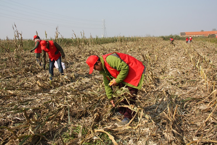 目前,位于柴門居民點(diǎn)附近的灌西實業(yè)公司農(nóng)田已進(jìn)入作物收獲期,由于所種玉米已經(jīng)完全成熟,且經(jīng)歷了一次大風(fēng)降溫天氣,所以在機(jī)械進(jìn)場作業(yè)前,有部分玉米已經(jīng)掉落在了地上,如不及時撿拾,將造成極大浪費(fèi)。公司團(tuán)委在得知這一消息后,立即組織近十名青年志愿者利用中午休息時間,到該公司農(nóng)田開展撿拾散落玉米志愿服務(wù)活動?;顒又?,大家手拿編織袋,排成橫排仔細(xì)搜尋并緩慢向前推進(jìn)。由于玉米皮與秸稈顏色相近且混雜在一起很難分辨,因此大家在撿拾過程中不僅需要認(rèn)真搜尋,有時還需要彎腰翻動秸稈,以最大限度的不遺漏任何一個散落的玉米。