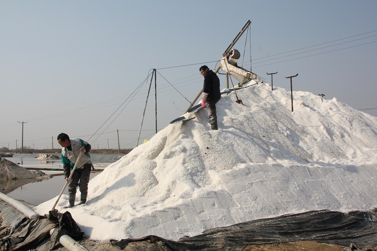在4班現(xiàn)場,我們看到“唐三零”操作手正在嫻熟的駕駛著機器在鹽池內緩緩移動,以認真的態(tài)度,飽滿的熱情進行著扒鹽工作。在不遠處的鹽廩上,雪白的原鹽正通過扒鹽篩匯集而下,大廩工也不時的用分離板進行疏導工作,潔白晶瑩的原鹽蔚然成廩。為了確保原鹽質量,生產服務公司化驗室的工作人員還在扒鹽現(xiàn)場對鹽質進行跟蹤監(jiān)測。據(jù)介紹,在扒鹽設備上,今年日曬制鹽公司除了全面推廣使用五寸管道扒鹽外,又進行了創(chuàng)新,將原來鹽、鹵分離篩上帆布引流裝置改為管道引流,這不僅有效降低了引流裝置的損壞幾率,減少了維修成本,更提高了設備的使用安全性。據(jù)了解,新河、埒南兩個制鹽分公司計劃共投入8臺扒鹽機組到此次扒鹽工作中來,目前已有七臺機組陸續(xù)出鹽,最后一臺機組也將在近日投入扒鹽工作,為原鹽銷售工作的正常有序開展提供保證。(封楊)