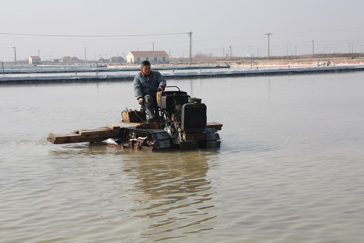日前,筆者在走訪日曬制鹽公司時看到,在埒南制鹽分公司七班的鹽池內,一臺“唐三零”扒鹽機正在進行扒鹽工作,池埝上機泵運作時的轟鳴聲回蕩在鹽灘上,標志著日曬制鹽公司今年的春扒戰(zhàn)役正式打響。