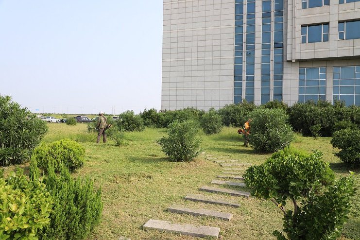 連日來,在臨港產(chǎn)業(yè)區(qū)辦公樓前,我們看到幾名南翼綠化公司的工人正在草坪上揮動割草機(jī),忙碌的進(jìn)行著除草作業(yè)。據(jù)了解,為了避開高溫時段,他們早上6點就開始工作,許多綠化工人都是五點多在家匆忙吃完早飯就趕往工作現(xiàn)場,有的甚至空腹上陣。工作現(xiàn)場,在經(jīng)過一個夏天的生長,不少地方的雜草都近半米高,草叢內(nèi)還有不少的碎石子等雜物,為了做好自身防護(hù),工人們穿著厚厚的衣褲,戴著口罩、頭盔,肩扛除草機(jī),一工作就是一上午。雖然近階段氣溫逐漸下降,但近30°的氣溫還是讓工人們吃不消。為了盡快完成工作目標(biāo),每一名工人都在咬牙堅持,默默地為更多的人營造一個優(yōu)美、整潔的環(huán)境而做出自己的貢獻(xiàn)。(封楊)