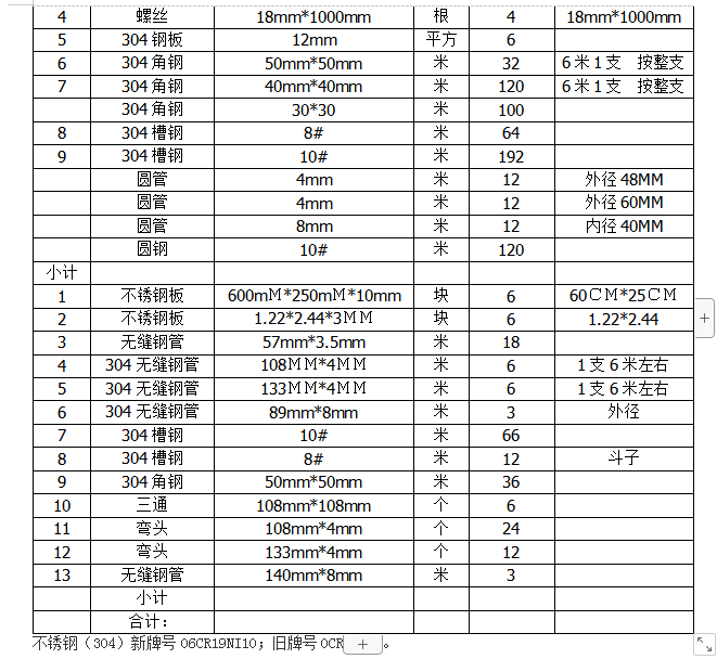 4.項目概況:不銹鋼(304)新牌號06CR19NI10;舊牌號0CR18NI9(304不銹鋼)。