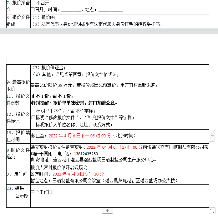 密封報價開啟時間及地點:2022年04月8日前,如有特殊情況時間另行通知。
