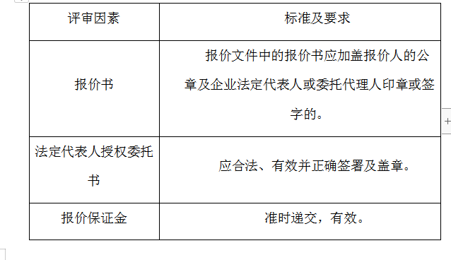 2、評審委員會將根據(jù)以下標準對各報價人進行初步評審,有一項不符合要求的,作否決報價處理,不進入詳細評審。
