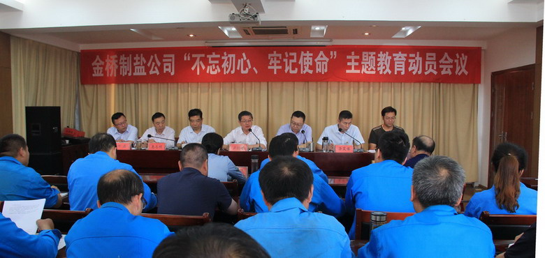 9月24日,金橋制鹽公司召開“不忘初心、牢記使命”主題教育動員會議,黨委書記、董事長、金橋制鹽公司主題教育領(lǐng)導(dǎo)小組組長朱桂玉作動員講話,要求全公司上下緊密團(tuán)結(jié)在以習(xí)近平同志為核心的黨中央周圍,以高度的政治責(zé)任感、良好的精神狀態(tài)、求真務(wù)實的作風(fēng),深入扎實地開展好主題教育,努力實現(xiàn)理論學(xué)習(xí)有收獲、思想政治受洗禮、干事創(chuàng)業(yè)敢擔(dān)當(dāng)、為民服務(wù)解難題、清正廉潔作表率的具體目標(biāo),以優(yōu)異成績慶祝新中國成立70 周年。集團(tuán)黨委主題教育第二指導(dǎo)組組長、集團(tuán)公司工會副主席盧同根,副組長、集團(tuán)黨群工作部副部長趙世聰?shù)綍笇?dǎo)。公司黨委副書記、紀(jì)委書記、工會主席李昊睿主持會議。副總經(jīng)理惠志明、曹開明、田磊參加會議。