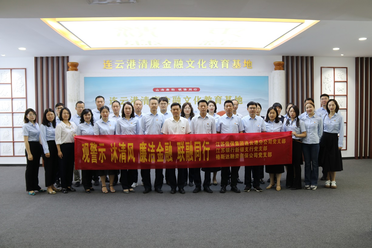為進(jìn)一步深入推進(jìn)清廉金融文化建設(shè),引導(dǎo)黨員干部牢固樹立廉潔自律意識(shí),做到警鐘長(zhǎng)鳴,切實(shí)發(fā)揮“聯(lián)融”黨建品牌的牽引帶動(dòng)作用。近日,我支部與江蘇信保集團(tuán)連云港分公司黨支部、江蘇銀行新銀支行黨支部聯(lián)合組織“觀警示·沐清風(fēng) 廉潔金融·聯(lián)融同行”共建活動(dòng),一同前往清廉金融文化教育基地,接受反腐倡廉教育,感受清廉金融文化洗禮。