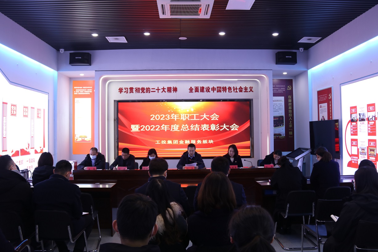 2月8日上午,工投金融服務(wù)板塊隆重召開2023年職工大會暨2022年度總結(jié)表彰大會,全體在崗員工參加大會。黨支部書記、董事長徐兵主持會議。