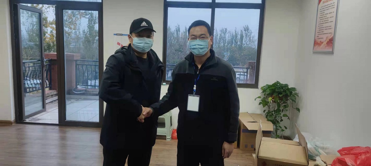 連云港市新浦街道新橋社區(qū)黨委書記史建國握著資產(chǎn)公司黨支部副書記王順友的手說“感謝工投志愿者為社區(qū)疫情阻擊戰(zhàn)所做的巨大貢獻”。