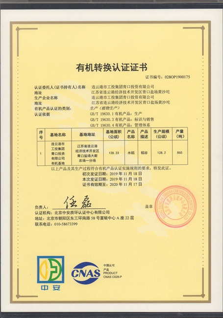 【企業(yè)要聞】公司“鹽田玉”米喜獲國家有機(jī)轉(zhuǎn)換認(rèn)證證書