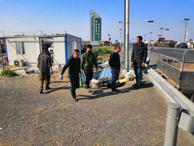 公司領導態(tài)度明確,一抓到底全面整治交通環(huán)境。摸清形勢,多次召開整治工作專項會議,安排部署整治行動 , 公司領導放棄節(jié)假日,現(xiàn)場辦公。三洋、黃沙、大新作為主要牽頭單位,主動扛起責任,挑起擔子,從泰祥公司抽調(diào)人力,大家齊心協(xié)力。按照時間節(jié)點,倒排工期,掛圖作戰(zhàn),針對現(xiàn)場工作內(nèi)容,制定 “三步工作法”。一是深入塘頭養(yǎng)殖戶面對面交流,講明利害關系,做通群眾思想工作,確保整治行動順利進行;二 是 制定好拆除先后順序,調(diào)配需要的挖掘機、運輸車輛等硬件設施,確保拆遷過程快速有力;三 是 對于已拆除的看護房,及時清理房屋碎石塊,筑牢地基,安排重建。