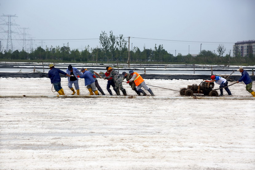 今年以來,針對(duì)政府征地、堿廠關(guān)停的現(xiàn)實(shí),投資公司積極推進(jìn)生產(chǎn)方式變革,打破一年兩季固有收鹽模式,實(shí)現(xiàn)原鹽隨用隨收。在海州灣先鋒東灘扒鹽一線,王德志仔細(xì)觀看了作業(yè)情況,現(xiàn)場(chǎng)收鹽職工正在進(jìn)行挪機(jī)工作。