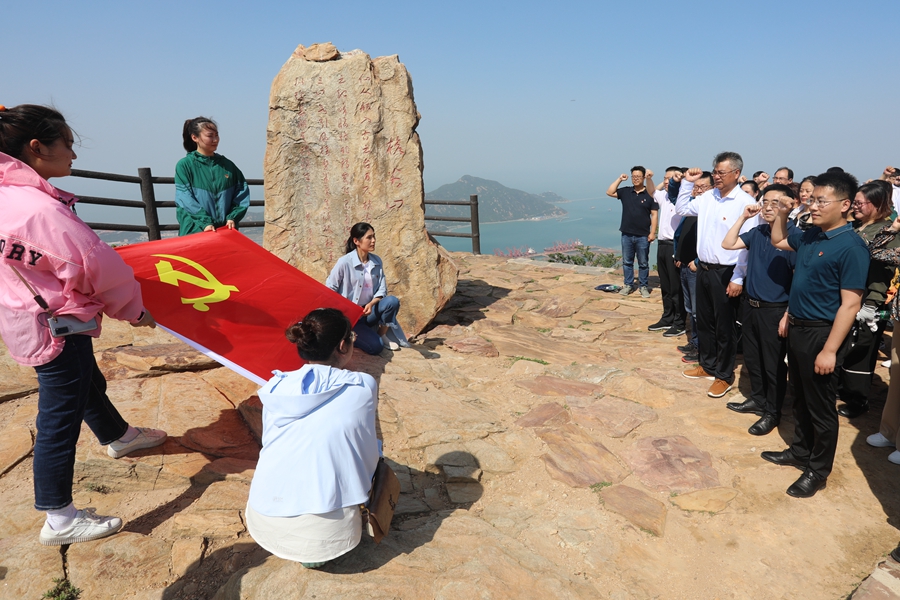 大家在桅尖口石碑前,仔細(xì)聆聽了工作人員講述了當(dāng)年連云港港保衛(wèi)戰(zhàn)的“一寸山河 一寸血”。隨后在曾經(jīng)無數(shù)抗戰(zhàn)英雄拋頭顱灑熱血的地方,全體黨員重溫了入黨誓詞,向黨和英烈們?cè)S下的“謹(jǐn)記昔日舉國(guó)傷痛,不忘犧牲砥礪前行”的誓言。