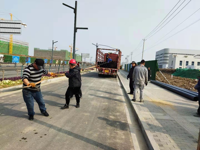 3月14日清晨,在金橋路管道施工現(xiàn)場,早已是人頭攢動(dòng)、號子聲響,隨著一根根9米長的PE250管道被有條不紊的卸下車,金橋路鈣液管道遷建工程順利拉開序幕。