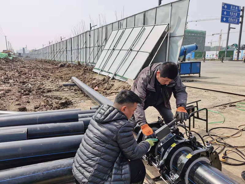 今天恰逢二月二龍?zhí)ь^,雖然是星期天,但卻絲毫不影響翔立人干事創(chuàng)業(yè)的龍馬精神。為了搶工期,分成三個(gè)攻堅(jiān)組,兩臺熱熔焊機(jī)分組同步進(jìn)行,一個(gè)運(yùn)輸組馬不停蹄保證管道的運(yùn)送供給。全體參與工程人員承諾“五天拿下全部工程量,再塑翔立鐵軍新形象”高亢的口號此起彼伏,嘹亮的誓言回響在施工現(xiàn)場上空,堅(jiān)毅的精神面貌再度彰顯出“拉得出、沖得上、打的贏” 的鐵軍風(fēng)范。