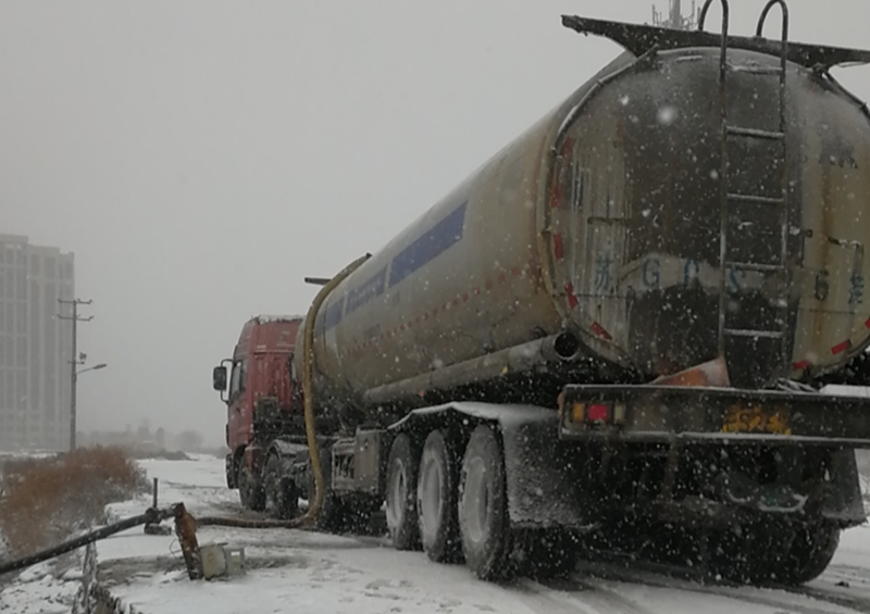 從不因天氣影響而中斷的鈣液銷售工作,風(fēng)雪中仍在如火如荼的進(jìn)行著。負(fù)責(zé)鈣液開票發(fā)放人員仔細(xì)的檢查并認(rèn)真注視液位流量計,嚴(yán)謹(jǐn)記錄,嚴(yán)格遵守“一車一票制度”,滿載鈣液的槽罐車在風(fēng)雪中緩緩前行,乘載著“瑞雪兆豐年”的希望!