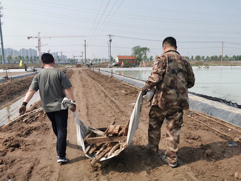火紅的五月,奮斗是最鮮明的底色,汗水是最美麗的音符。為了搶抓天時,確保春季生產(chǎn)工作能夠順利開展,來自機關(guān)部門和臨達、海州灣等公司的20位“突擊隊員”放棄周六休息,來到大浦工區(qū)先鋒東灘協(xié)助灌池工作。