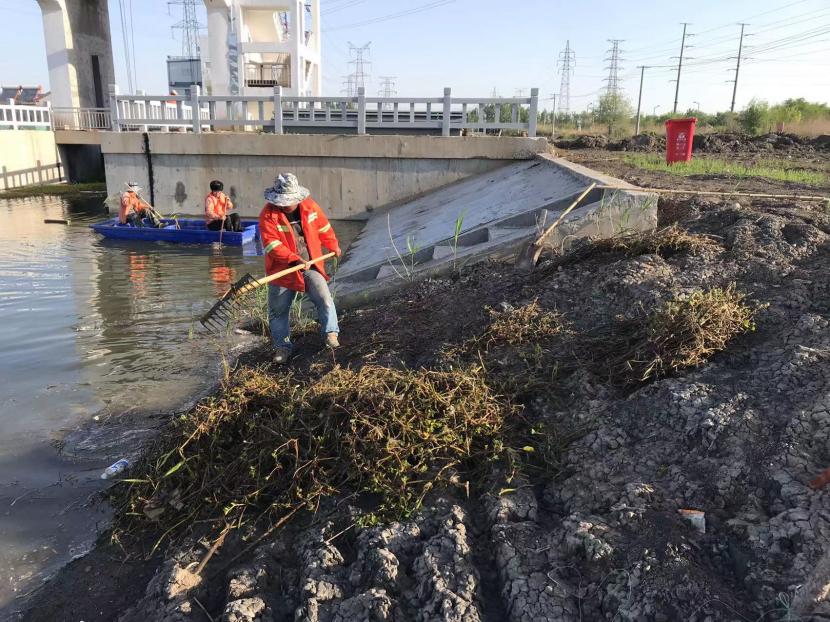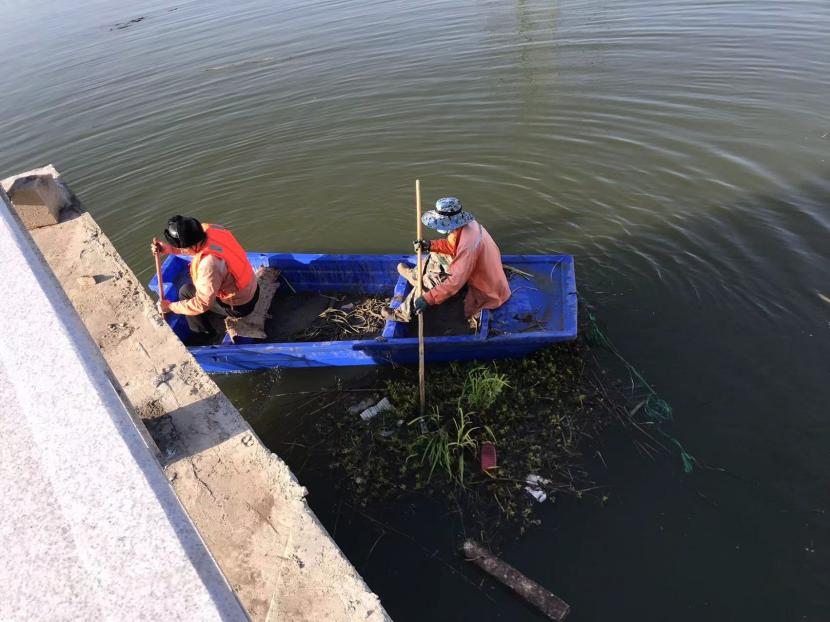 盛達(dá)市政分公司通過巡查發(fā)現(xiàn),佟圩河河道水草泛濫成災(zāi),導(dǎo)致河道堵塞, 水流不暢,給周邊環(huán)境和生態(tài)系統(tǒng)帶來了嚴(yán)重的影響。為確保轄區(qū)河道擁有一個(gè)“水清、岸綠、河暢、景美”的生態(tài)環(huán)境,該分公司立即調(diào)配5名水性較好的員工,于4月24日上午,對該水域的水草及雜物進(jìn)行打撈清理。