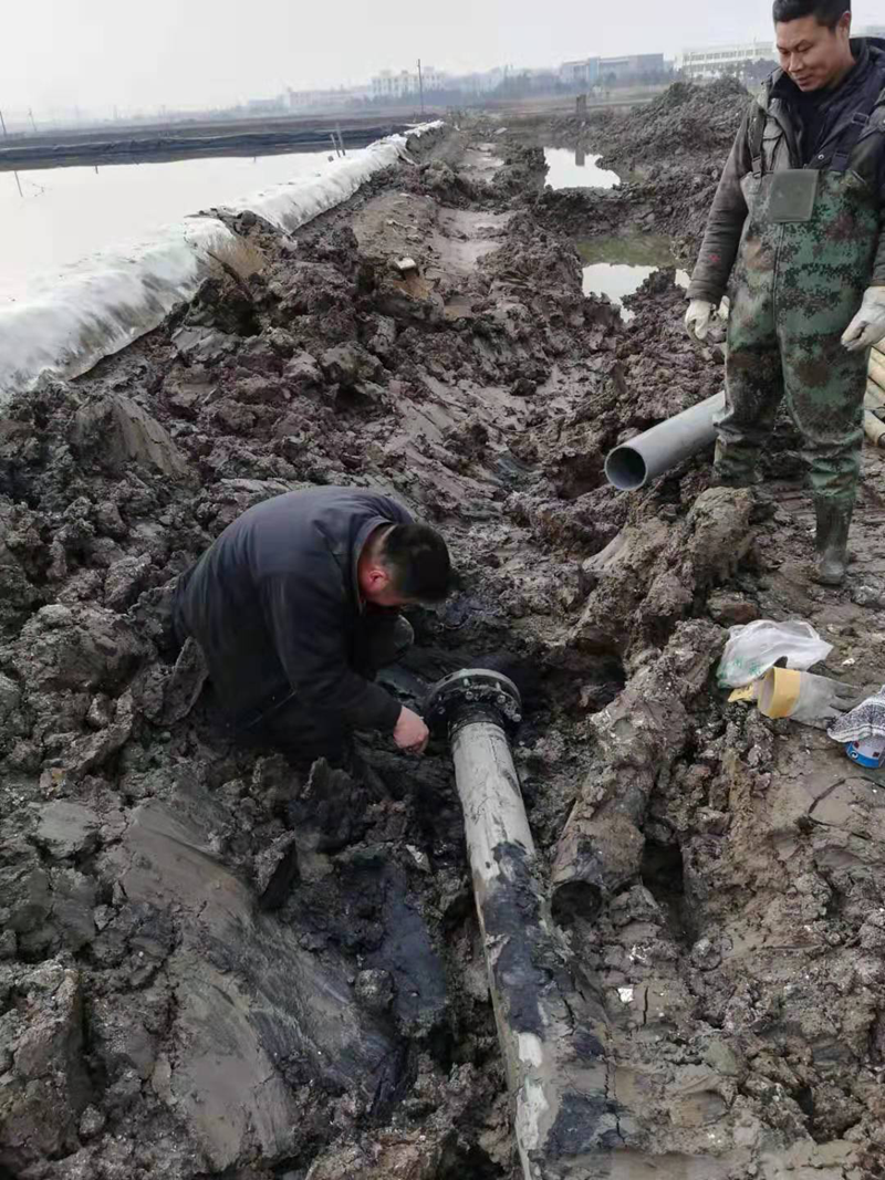 該項(xiàng)工程是為了配合開發(fā)區(qū)新建道路正常施工,和保證大浦工區(qū)原鹽生產(chǎn)不受影響,由翔立分公司承接的猴嘴十二路下穿DN315和DN160兩根PE管道穿越工程。因規(guī)劃的穿越點(diǎn)處于水塘邊,現(xiàn)場施工環(huán)境較為困難。翔立公司參與施工人員想方設(shè)法克服困難,穿越施工前采取發(fā)電機(jī)水泵抽排水、填土夯實(shí)頂管機(jī)作業(yè)場地、克服淤泥深等障礙,保證施工進(jìn)度的正常進(jìn)行。