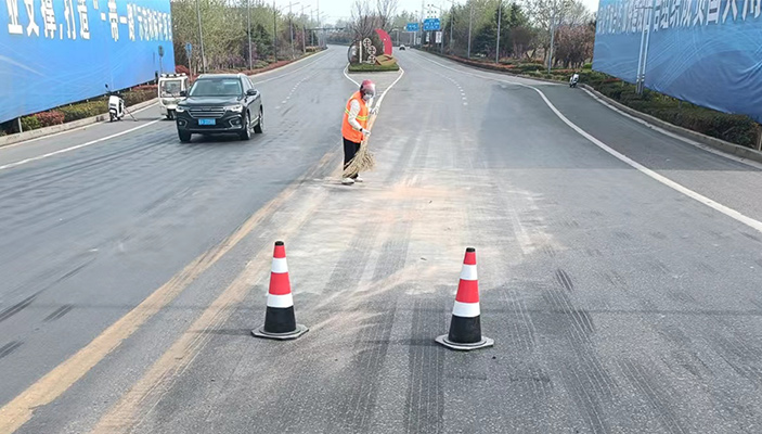 強化突擊重保潔。四月份以來完成園區(qū)大小突擊保障3次,完成橋梁排水孔疏通工作。針對管養(yǎng)轄區(qū)域過往大型車輛大量石子拋灑、渣土遺漏實際情況,該公司分類處置,對癥下藥,對于此類拋灑頻率較高路段,采取增加作業(yè)人員、黨員突擊奉獻(xiàn)、人機結(jié)合清理等形式,保證路面整潔,消除安全隱患。