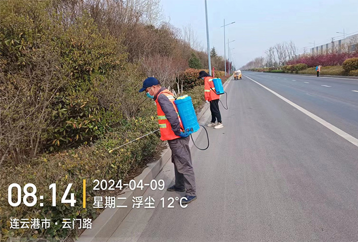 強化修剪重養(yǎng)護(hù)。該分公司以防為主,防治結(jié)合,全面開展春季病蟲害防治工作,對整個園區(qū)綠植面積 62萬平方進(jìn)行全面施藥。序時開展園區(qū)綠化帶除草工作,四月上旬園區(qū)內(nèi)云港路,祥和路,金港路綠地雜草、落葉清理,清理面積25萬平方。積極打造綠化養(yǎng)護(hù)樣板路。突出祥和、云港重點路段,2班全面對祥和3期利用4天時間對所轄綠化帶采取人機結(jié)合全面除草,并根據(jù)苗木的長勢,在正常養(yǎng)護(hù)工作的同時,開展春季病蟲害防治。定期安排補水,日澆水量50余立方,有效的促進(jìn)苗木生長,全面掀起大干二季度工作熱潮。(劉永)