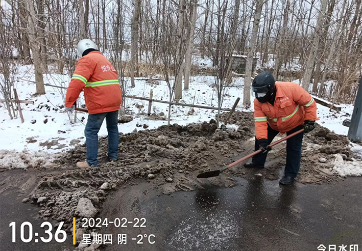 寒雪無情,人間有情,該公司黨員干部齊上陣,60余人奔赴道路一線開展清冰掃雪工作。按照“先主后次、先內(nèi)后外、先陡后平、先重點(diǎn)后一般”的順序,對(duì)轄區(qū)內(nèi)主干道、幸福家園周邊等地的冰凍積雪進(jìn)行集中清理。在幸福家園小區(qū)清掃現(xiàn)場,大家不懼嚴(yán)寒、干勁十足,手里拿著鐵鍬、掃帚等清掃工具,相互配合,對(duì)路面上的積雪、積冰進(jìn)行清掃鏟除,經(jīng)過大家持續(xù)奮戰(zhàn),冰雪覆蓋的路面被打掃的干干凈凈,為小區(qū)居民的出行安全帶來了保障。
