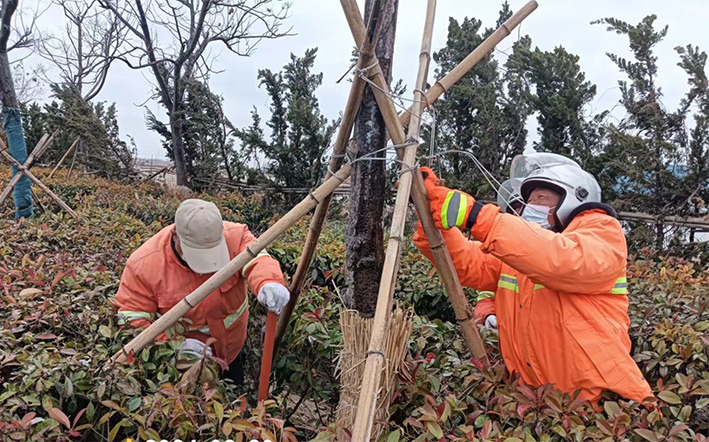 降雪發(fā)生以來,在清理路面積雪保障群眾安全通行的基礎(chǔ)上,該公司迅速組織班組開展園林苗木積雪冰凍清除工作,重點(diǎn)對(duì)黑松、雪松、龍柏、球類等苗木積雪進(jìn)行清理,及時(shí)為樹木“減壓”,避免積雪壓彎或壓斷樹枝,及時(shí)消除安全隱患,保護(hù)轄區(qū)內(nèi)綠化成果。截至目前,共計(jì)清除各類園林苗木積雪8600余株。(陳小東)