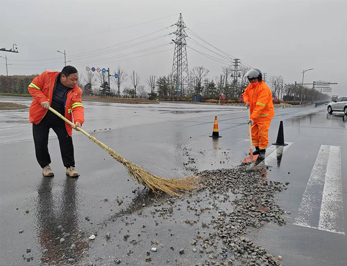 聚焦“兩個作用”、提升應急處理。支部堡壘與先鋒表率作用有力得以彰顯。該分公司黨員生產骨干張學軍、徐習東、陸永柱,巡現時發(fā)現轄區(qū)道路現場車輛拋灑石子,第一時間安全迅速奔赴清理路段,與同事齊心合力揮動手中大掃把,清掃石子近1000多米長,轉運清倒30余車,工作中爭先恐后場景成為雨中道路上最美感人畫面。(楊波)
