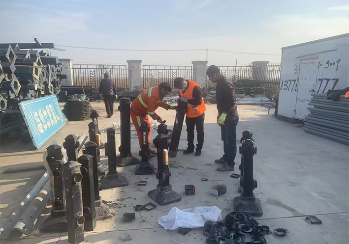 道路養(yǎng)護班組根據多日來梳理形成的問題清單,制定切實可行的維修方案,確保安裝質量和進度。在蘇海路維修更換老款護欄時,為了達到全路段護欄設施的整體性、連續(xù)性、統(tǒng)一性,養(yǎng)護人員積極作為,對先前更換拆下的老款護欄進行合理利用,相對完好的,用于同款護欄的補換及用于日后臨時應急道口封控保障等。