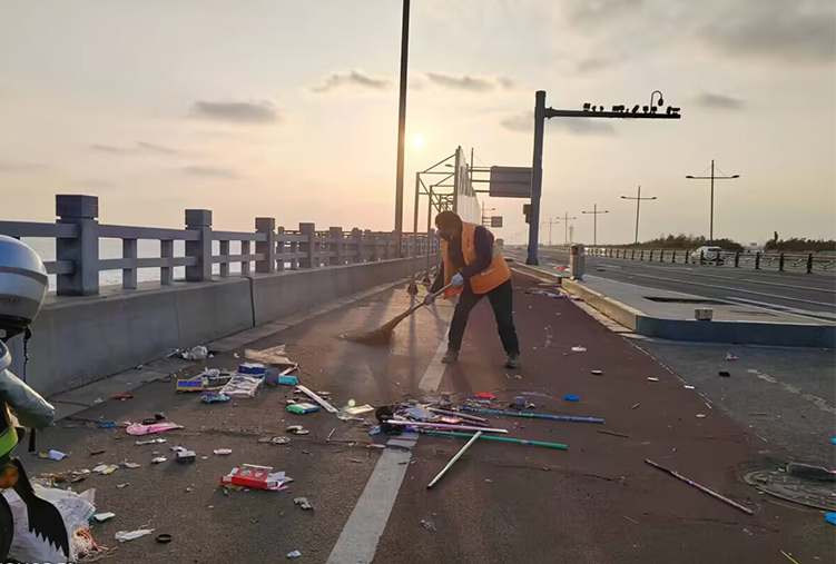 “六位一體”,加強機械作業(yè)力度。保潔分公司全面落實精細化管理工作制度,加大機械化清掃作業(yè)力度,每天持續(xù)出動18臺大清掃車、2臺高壓沖洗車拉網(wǎng)式上路作業(yè)。加強責任區(qū)域巡回檢查力度,清掃打包各類煙花垃圾50多包泥土30多處,轉(zhuǎn)運各類垃圾100多車清洗護欄長30多公里、站臺30,以更高標準、更嚴要求推進節(jié)日期間保潔工作。