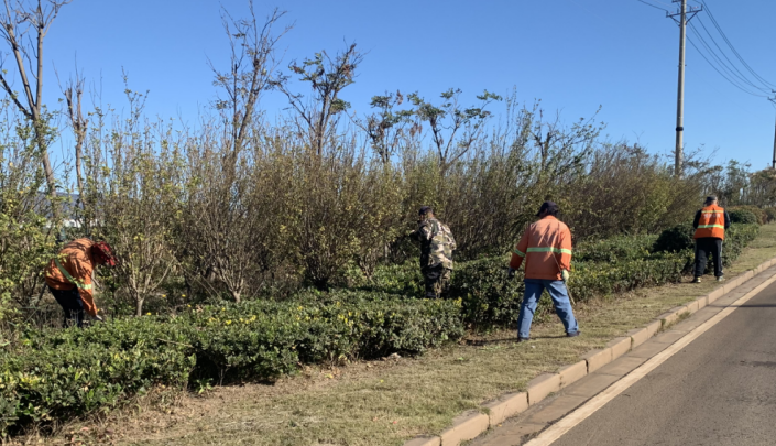 綠化班組每日出動(dòng)40余人次,采取人機(jī)結(jié)合方式,對(duì)綠化帶內(nèi)雜草進(jìn)行全面清理,對(duì)綠植、灌木、草坪進(jìn)行全面修剪工作,提升園林綠化精心化管護(hù)水平。結(jié)合當(dāng)前實(shí)際,科學(xué)施肥合理安排澆水時(shí)間、澆水量,有效防止因干旱造成綠化植物死株死苗現(xiàn)象出現(xiàn)。為強(qiáng)化科學(xué)養(yǎng)護(hù),提升景觀。搶抓好天氣,對(duì)管轄園區(qū)綠植物開(kāi)展修剪行動(dòng),除枯死枝、折斷枝、病蟲(chóng)枝、下垂枝,死樹(shù)、死苗、雜物進(jìn)行清理,促進(jìn)植物正常生長(zhǎng),有效提升綠化景觀效果。