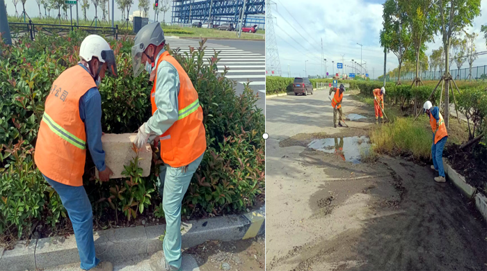 九月徐圩,秋陽(yáng)高照。連日來,為高質(zhì)量完成9月15日中歐班列國(guó)際合作論壇(連云港)2023年大會(huì)道路保潔大保障。保潔分公司上下無懼“秋老虎”炎熱天氣加班加點(diǎn),持續(xù)奮戰(zhàn)。用勤勞汗水清掃新城道路,用堅(jiān)守與擔(dān)當(dāng)描繪敬業(yè)工作畫面,“三力”確保大保障勝利收官。