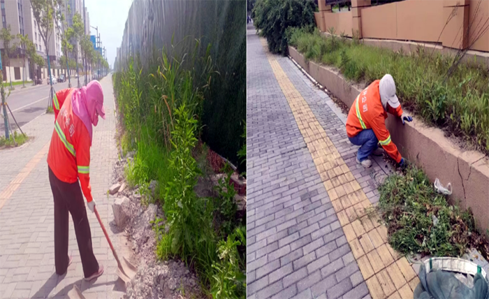 ? ? ? 道路保潔“無(wú)所畏懼”。 黑色柏油馬路上,熱浪滾滾,橙色工作服在強(qiáng)烈陽(yáng)光照耀下顯得格外引人注目。女子班,228班組保潔人員在班長(zhǎng)龔飛、姚功帶領(lǐng)下,肩背除草機(jī),雙手緊握長(zhǎng)長(zhǎng)的操作手柄,高速旋轉(zhuǎn)的打草帶,將雜亂草葉打斷、甩開(kāi),不一會(huì),就“收割”上海路生活區(qū)周邊雜草20多處;人工清掃裝運(yùn)施工車輛拋灑石子、泥土30余車,擦洗站臺(tái)座椅30多個(gè),清掏果皮箱200余只,盡心盡職完成突擊保潔任務(wù)。